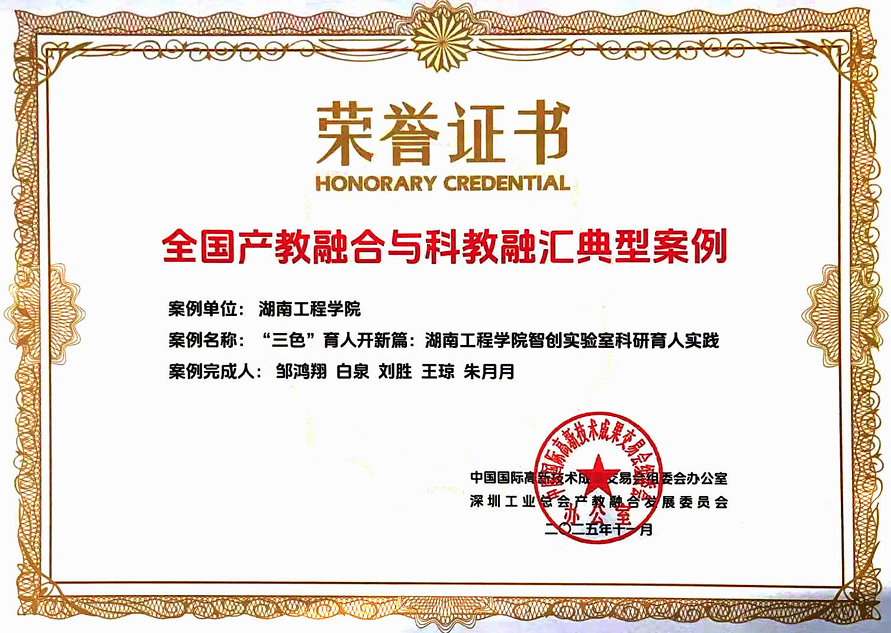 2025年11月,由william威廉亚洲官方报送的《“三色”育人开新篇:william威廉亚洲官方智创实验室科研育人实践》案例,成功入选“第二十七届中国国际高新技术成果交易会(高交会)全国产教融合与科教融汇典型案例”。展现了学院在推进科研育人、深化产教融合方面的创新成果。