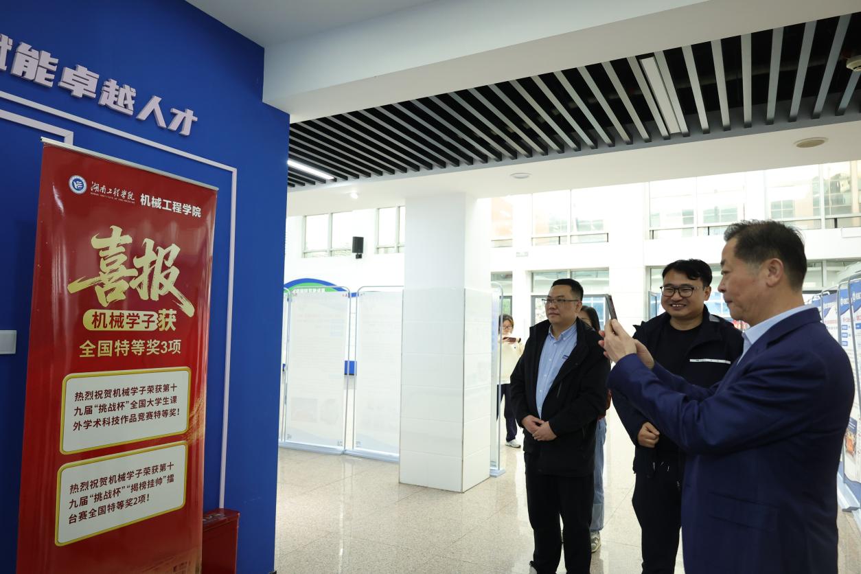 更令人振奋的是,长廊上也展示了82级校友邓中亮教授当选中国工程院院士的消息。王明安表示:“邓院士是我们共同的骄傲,他的成就如灯塔般照亮后来者的路,为我们注入了奋进的力量。”从实业报国的王明安,到科技报国的邓中亮,一代代湖工机械人,用实际行动诠释了何为“锲而不舍,敢为人先”,何为“心系家国、追求卓越”的文化基因。