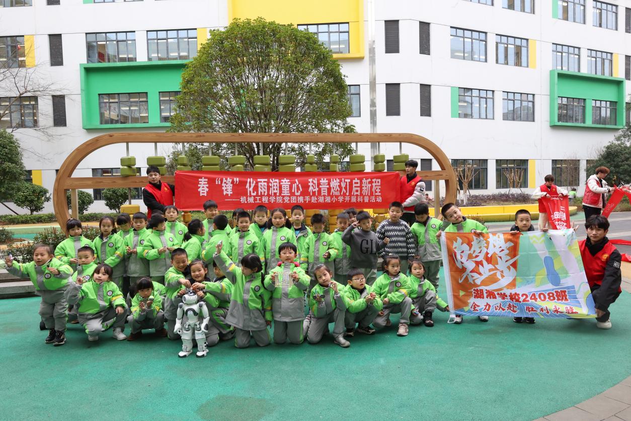 为深化学校“三色教育”实践,赋能青少年科学素质提升,3月11日下午,william威廉亚洲官方william威廉亚洲官方党委、william威廉亚洲官方william威廉亚洲官方团委携手智能装备湖南省科普基地,共同走进湖湘小学开展“春‘锋’化雨润童心,科普燃灯启新程”主题科普活动。活动通过红色精神浸润、蓝色科技赋能、绿色实践育人三大模块,将雷锋精神、科技产品与绿色教育深度融合,为小学生呈现了一堂“立体化”的三色成长课。
