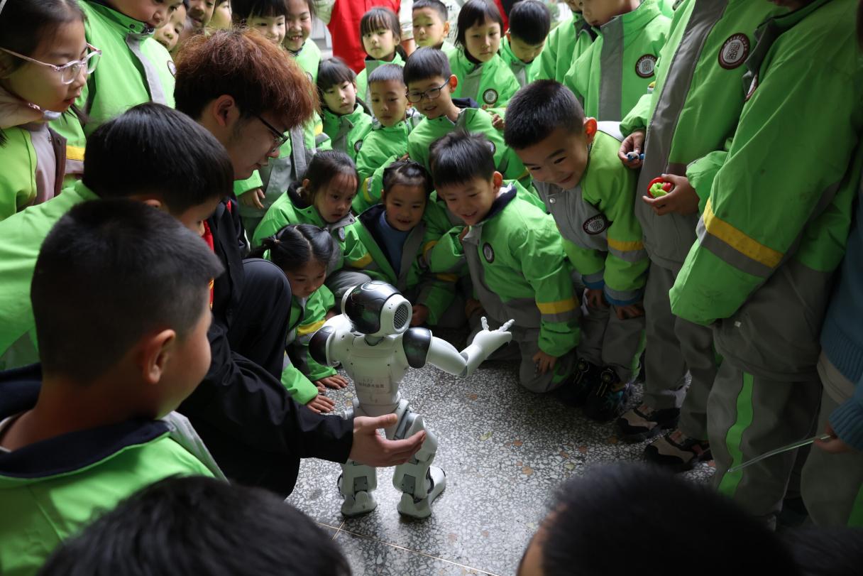 “哇!机器人会跳舞!”当智能装备湖南省科普基地的机器人随着音乐灵活摆动时,孩子们瞬间沸腾。学院科技创新团队带来了自主研发的编程机器人,通过情景化演示展现人工智能魅力。在志愿者指导下,小学生们用简易指令卡操控机器人完成避障、搬运等任务,亲身体验“人机协同”的奇妙。“为什么机器人能听懂我们说话?”“它们会不会自己思考?”面对孩子们天马行空的问题,志愿者以“智能传感器就像机器人的眼睛”“程序代码就是机器人的大脑”等形象比喻深入浅出地讲解核心技术。